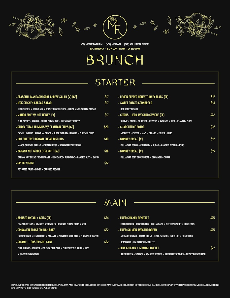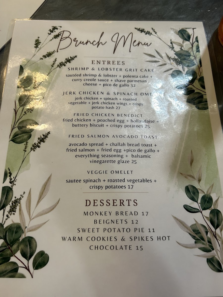 The menu features a variety of dishes that are both comforting and innovative. Start with their Sweet Potato Cornbread, drizzled with hot honey and cinnamon butter, or indulge in Crab Cakes with jerk hollandaise. For the main course, the Braised Oxtails & Grits is a must-try, melding rich oxtail flavors with creamy gouda grits. The Lamb Chops paired with crispy potatoes and jerk hollandaise is a standout! And don’t forget dessert— the decadent four-layer chocolate cake is perfect for any chocoholic.